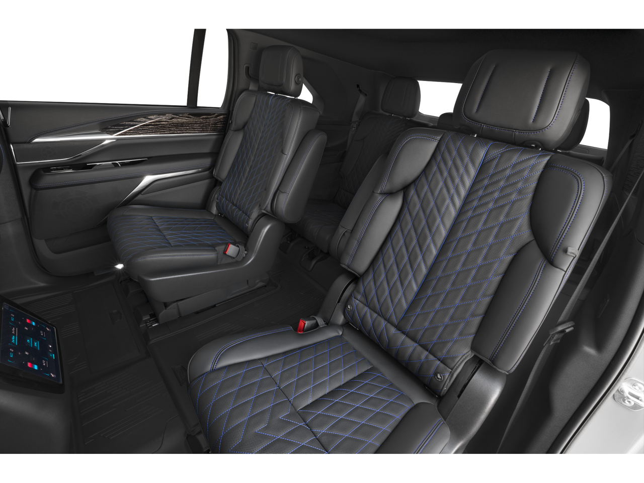 - Seats, front bucket (16-way power front row seating, including 8-way power adjustment, 4-way lumbar adjustment, 2-way shoulder adjustment and 2-way back bolster adjustment.)