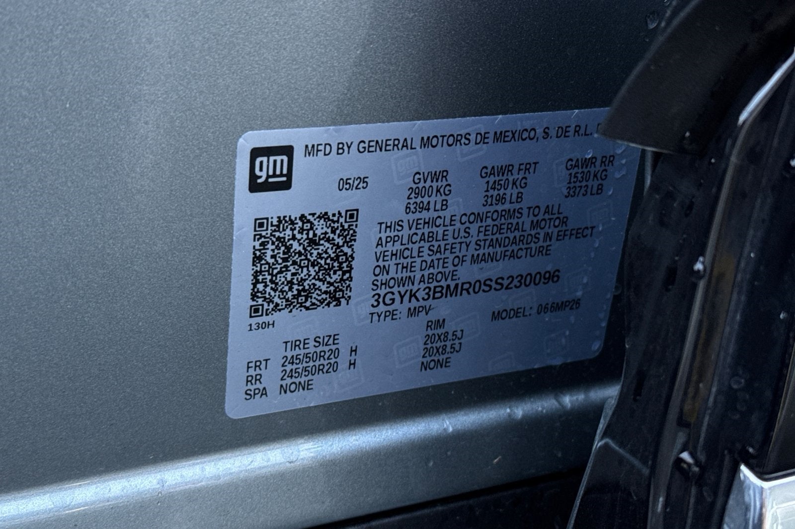 - Rear Tire Size: 245/50R20