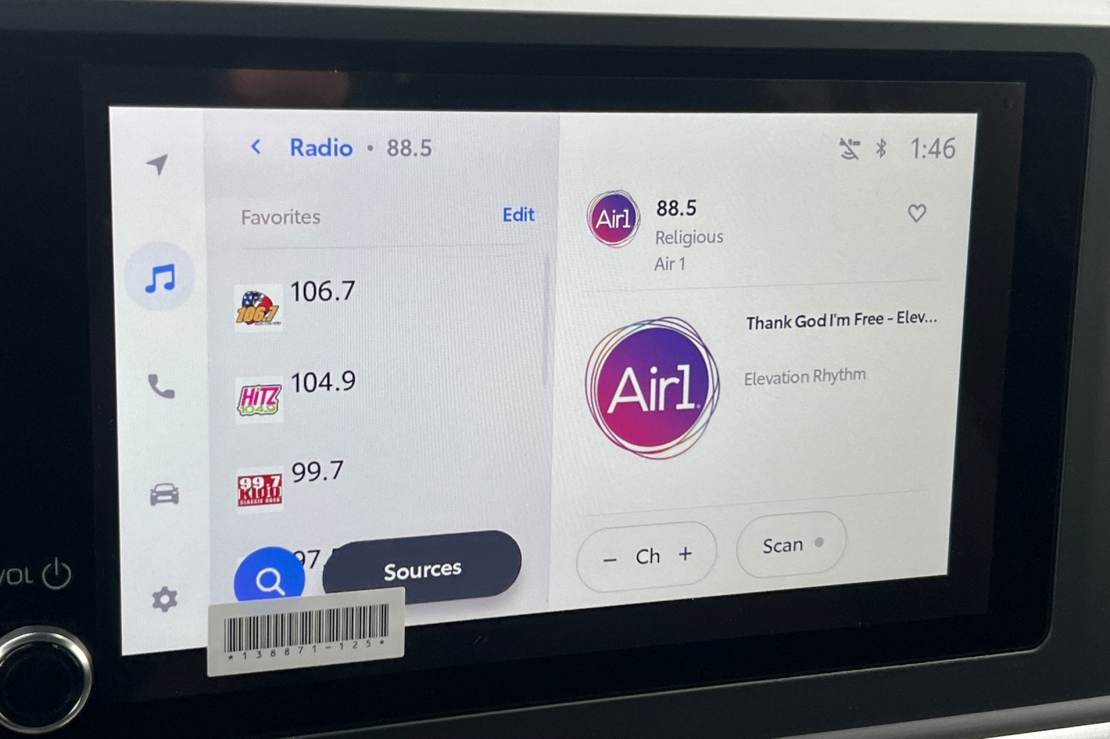 - 8-in. Toyota Audio Multimedia display with 6-speaker audio system, wireless Apple CarPlay® & Android Auto™ compatibility, SiriusXM® 3-month trial subscription. See toyota.com/connected-services for details.