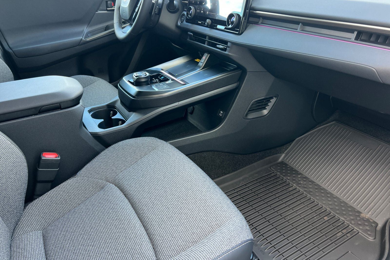 - Black carpet flooring with driver-side footrest