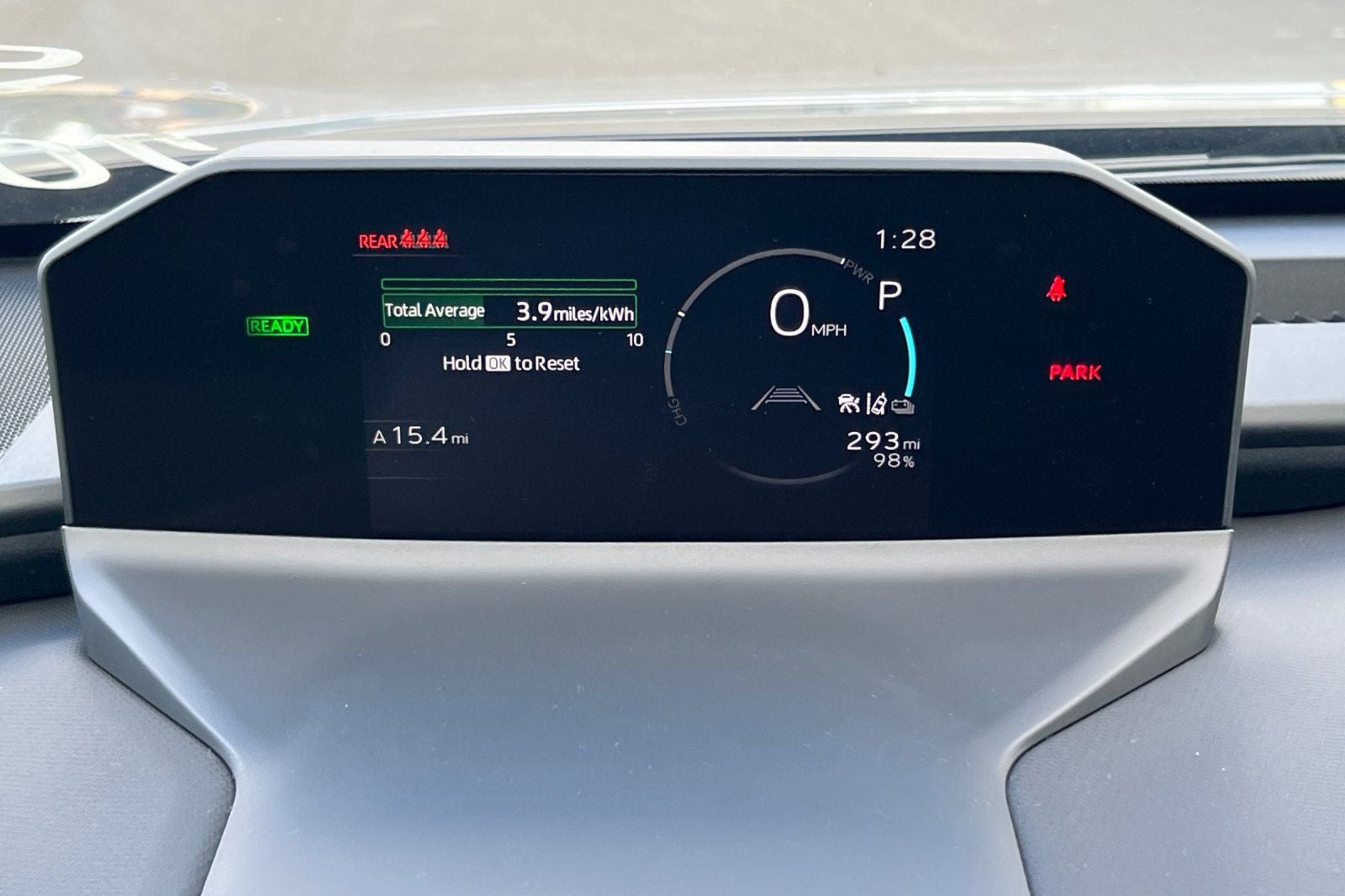 - Top-mount Multi-Information Display (MID) with indicators and 7-in. LCD display with speedometer, charge meter, power output meter, drive mode indicators, instrumentation and customizable settings, odometer, tripmeters, clock, outside temperature, rear passenger seatbelt indicators, fuel economy information, trip timer, charging information and settings, and warning messages