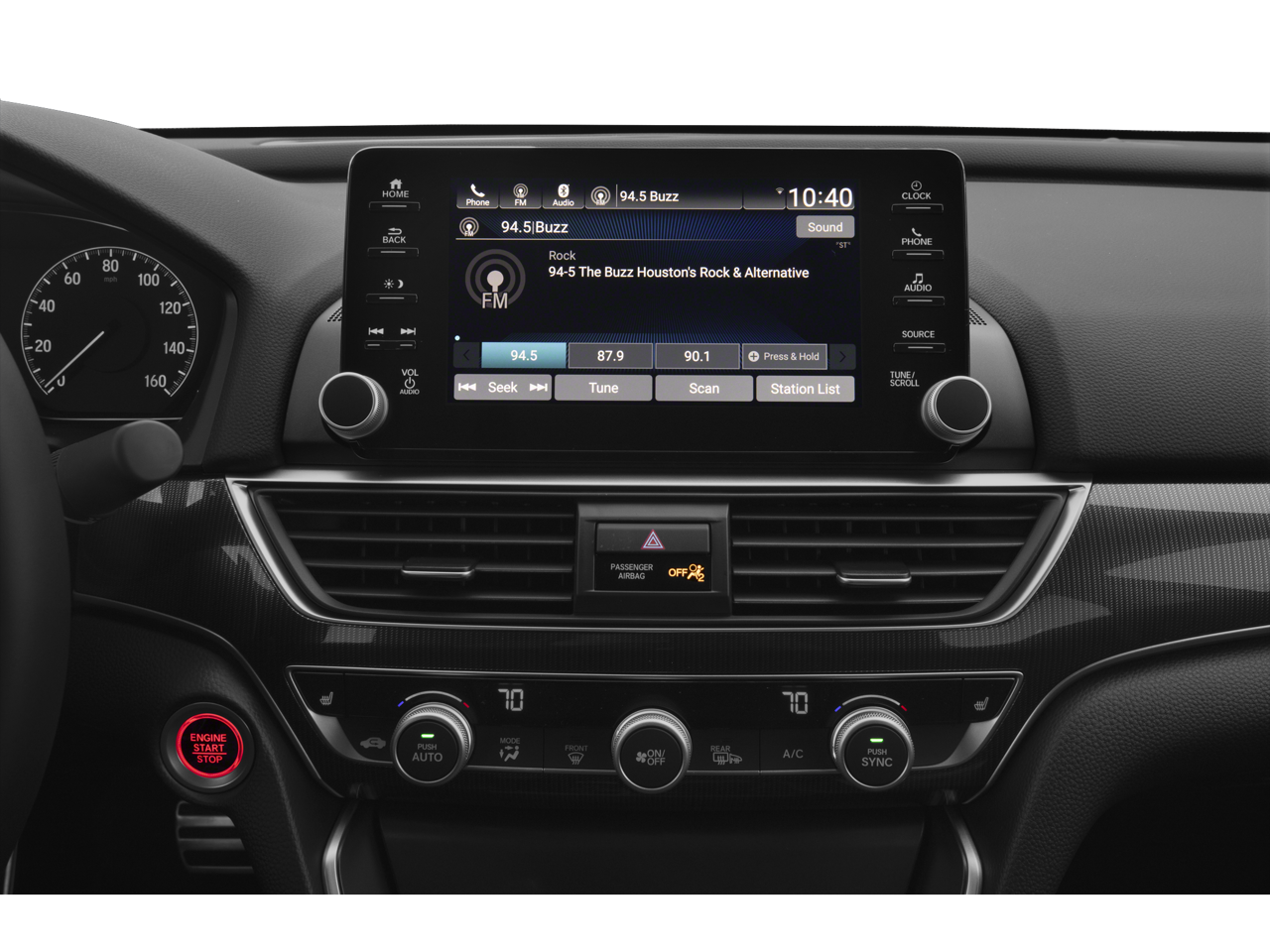 - Radio: 180-Watt AM/FM Audio System -inc: 8 speakers, 8" display audio w/high-resolution electrostatic touch-screen, knobs and hard keys for primary controls and customizable feature settings, Bluetooth® HandsFreeLink, Bluetooth® streaming audio, SMS text message function, Radio Data System (RDS), Speed-Sensitive Volume Compensation (SVC), HondaLink, Apple CarPlay integration, Android Auto integration, 2 2.5-amp USB smartphone/audio interface ports in front console, 2 2nd-row 2.5-amp USB charging ports, illuminated steering wheel-mounted controls and gloss black fin-type roof-mounted antenna