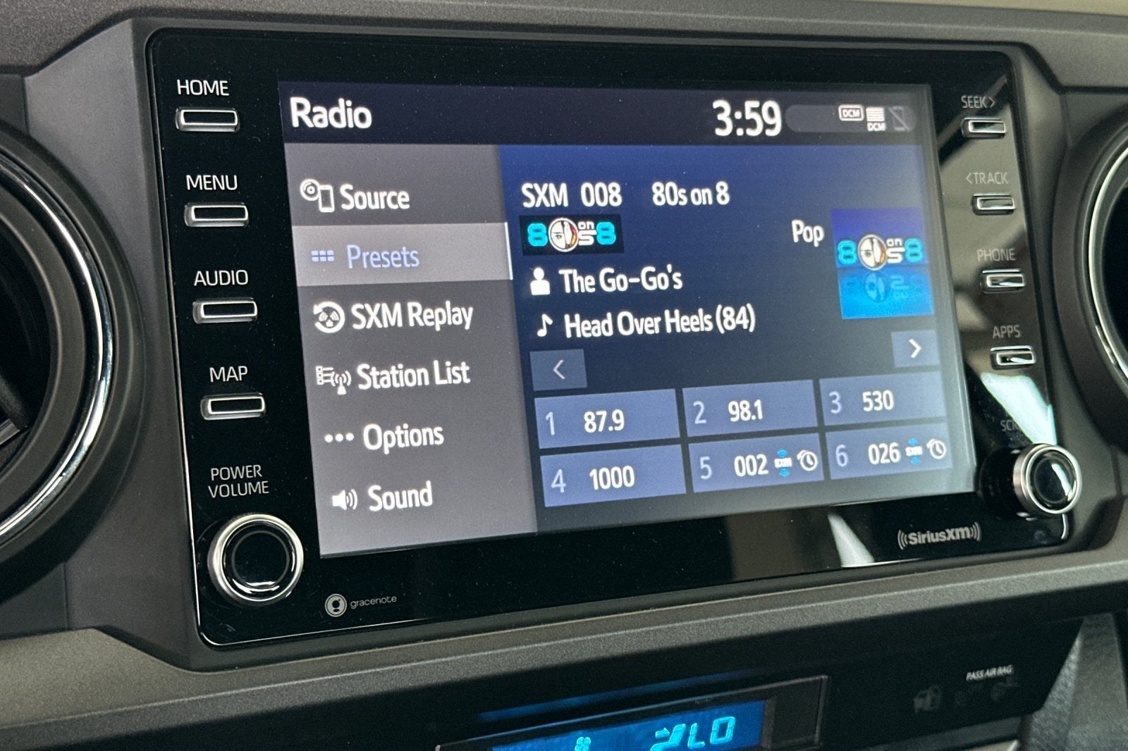 - Radio: Audio -inc: 6 speakers, 8" touchscreen, Android Auto, Apple CarPlay and Amazon Alexa compatible, hands-free phone capability, advanced voice recognition and music streaming via Bluetooth® wireless technology, SiriusXM w/3-month all access trial and Connected Services (Safety Connect w/1-year trial and Wi-Fi Connect w/up to 2 GB within 3-month trial), See toyota.com/audio-multimedia for details